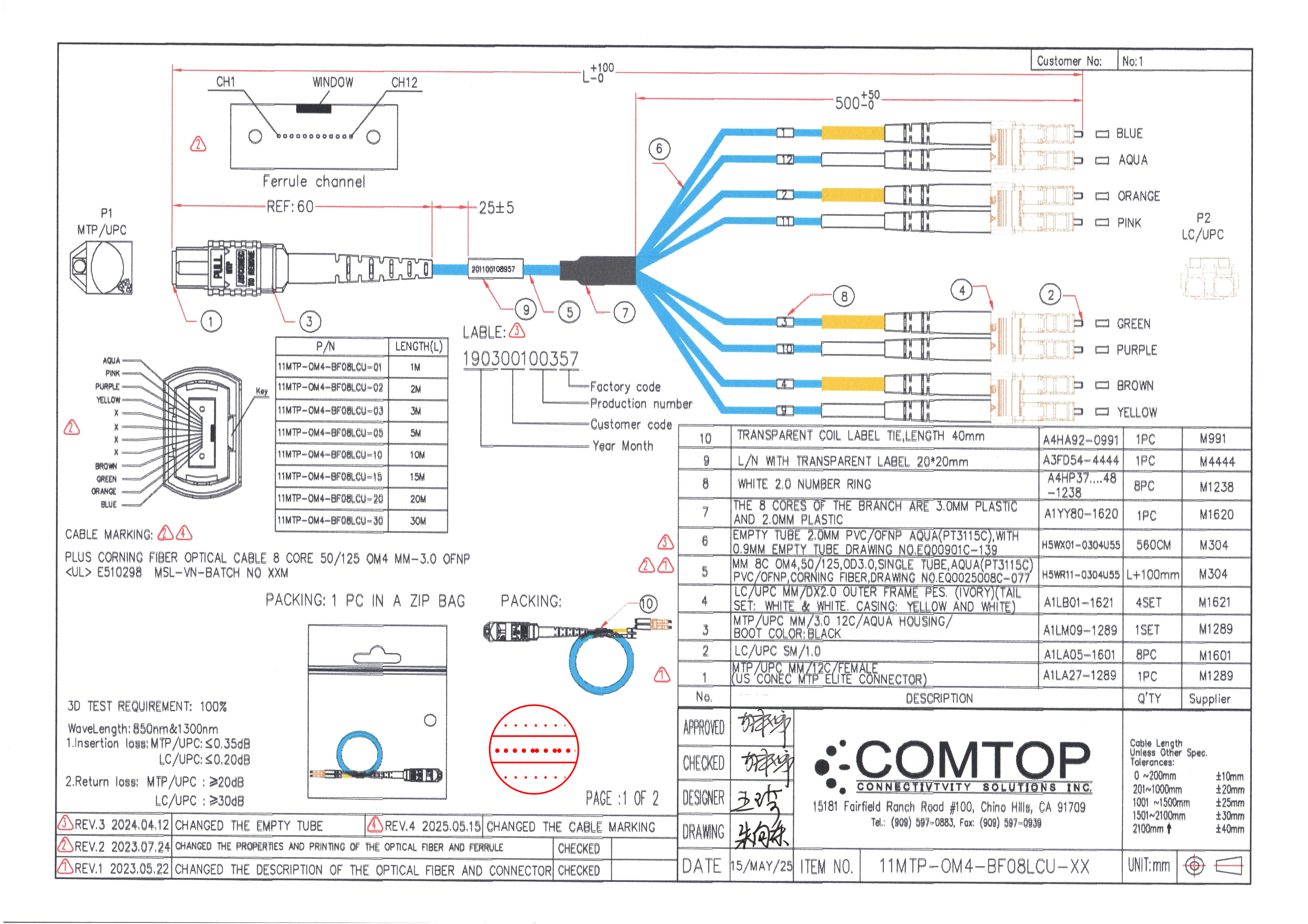 | Wire specification | EMPTY TUBE 2.0MM PVC/OFNP AQUA(PT3115C),WITH 0.9MM EMPTY TUBE DRAWING NO,EQ00901C-139 |