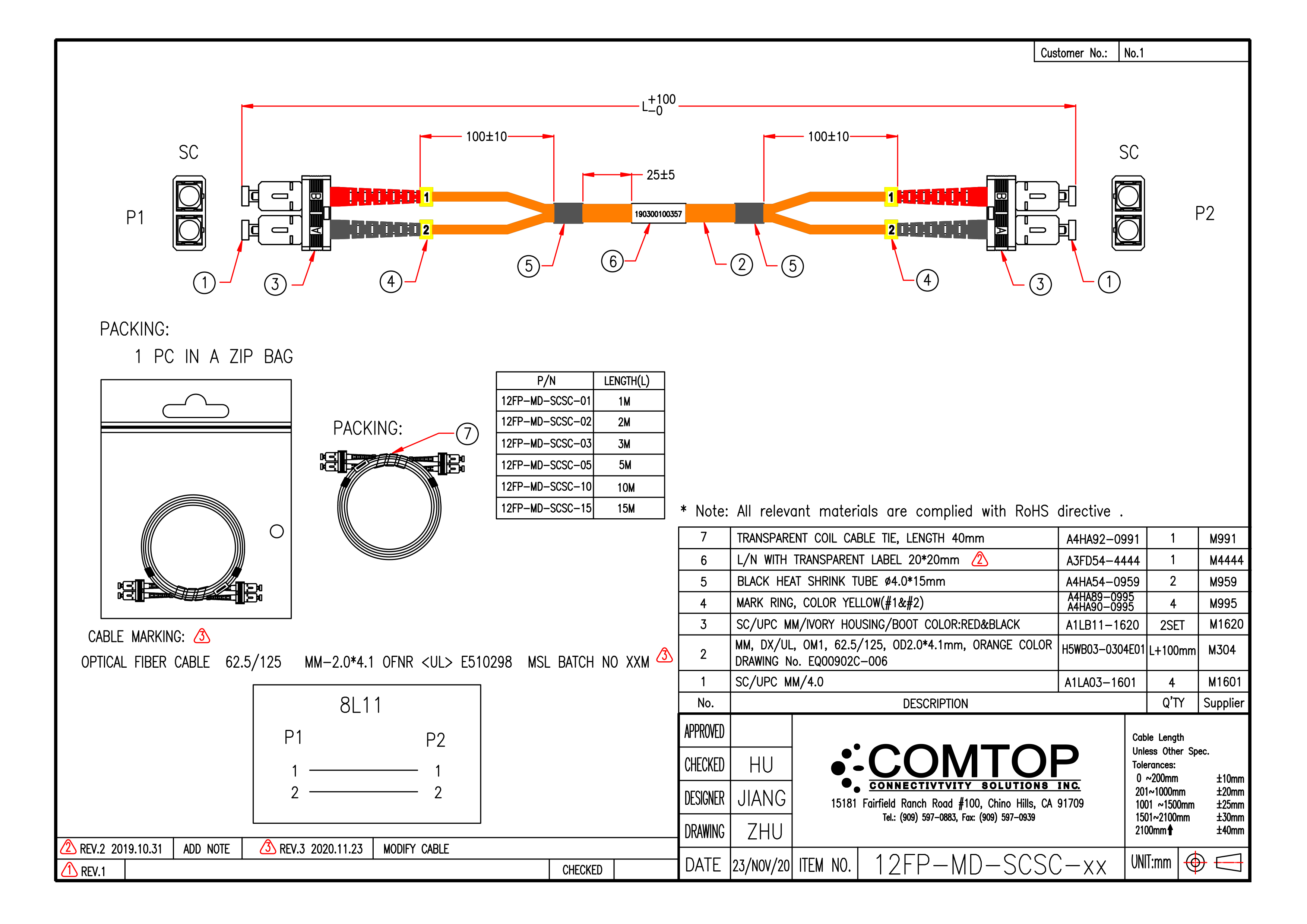 Wire specification | Multi Mode Duplex OM1 62.5/125 OD2.0*4.1mm OFNR |