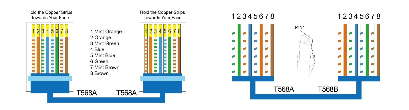 Cáp thẳng sử dụng cùng một tiêu chuẩn đấu dây ở cả hai đầu, trong khi cáp chéo sử dụng T568A ở một đầu và T568B ở đầu còn lại để đảm bảo truyền dữ liệu chính xác.